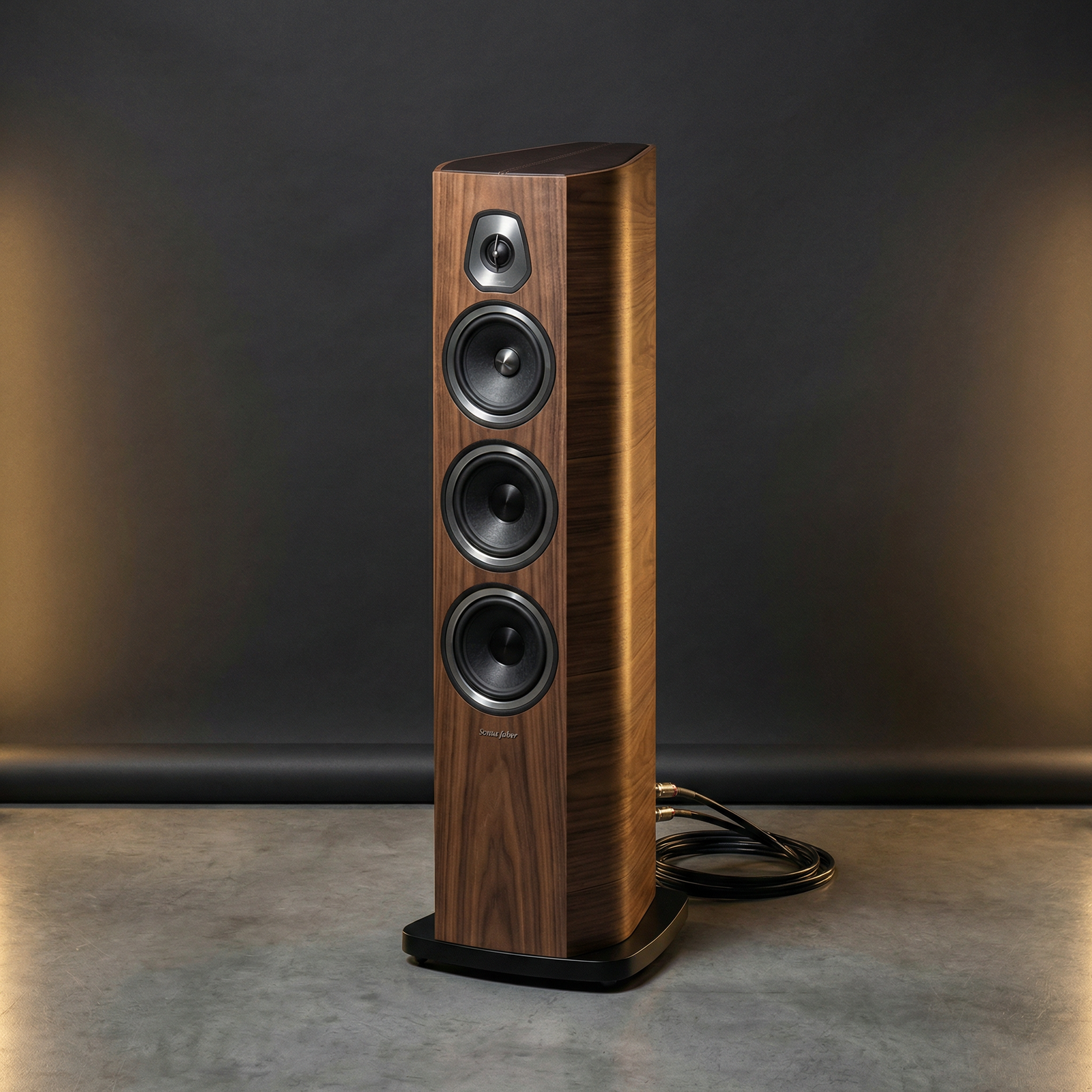 The flagship of the Sonetto G2 series, the Sonetto VIII G2 represents the pinnacle of Sonus Faber’s accessible high-end range. Featuring dual 180mm woofers with a proprietary cellulose pulp cone, a 150mm midrange driver, and a 29mm silk dome tweeter, this three-way floorstanding speaker delivers exceptional bass extension and dynamic range. The elegant curved cabinet, crafted from natural walnut with genuine leather accents, eliminates internal standing waves while showcasing Italian artisanal e